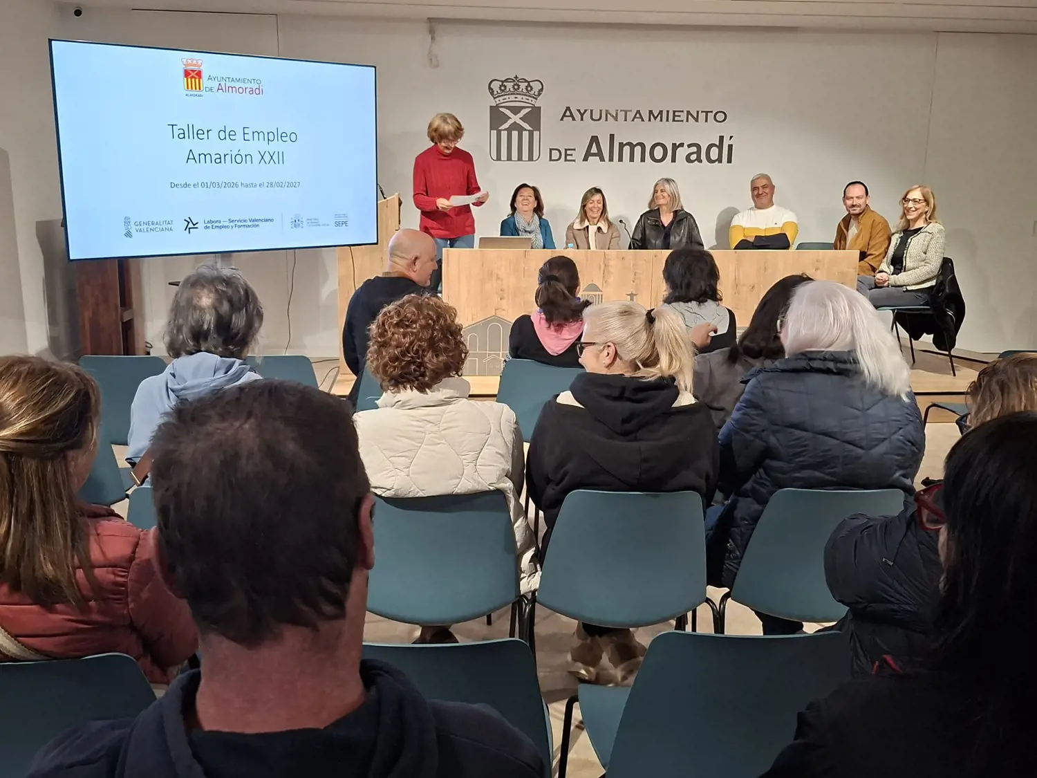 La concejal de empleo, MΒͺCarmen Berna Diego y la alcaldesa de AlmoradΓ, MarΓa GΓ³mez GarcΓa, dieron la bienvenida a los 30 alumnos y a los docentes y personal administrativo de este taller de empleo.