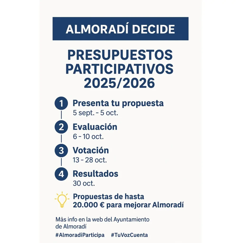 El Ayuntamiento de Almoradí abre el proceso de Presupuestos Participativos 2025/2026