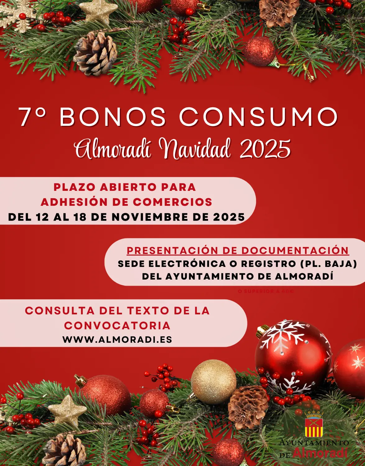 Hoy se ha publicado en BOP el extracto de la nueva convocatoria de ayudas Bonos Consumo Almoradí Navidad 2025.